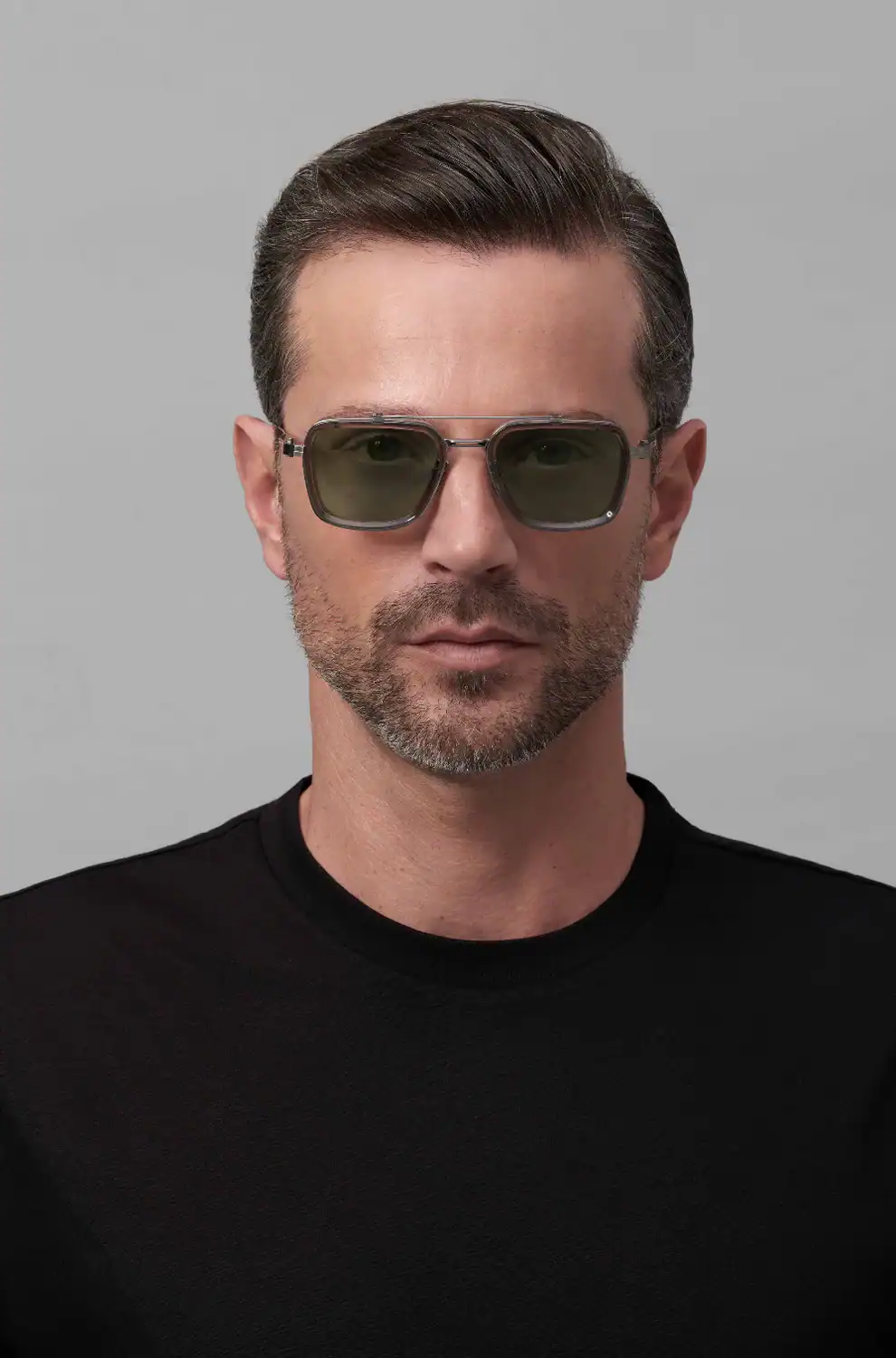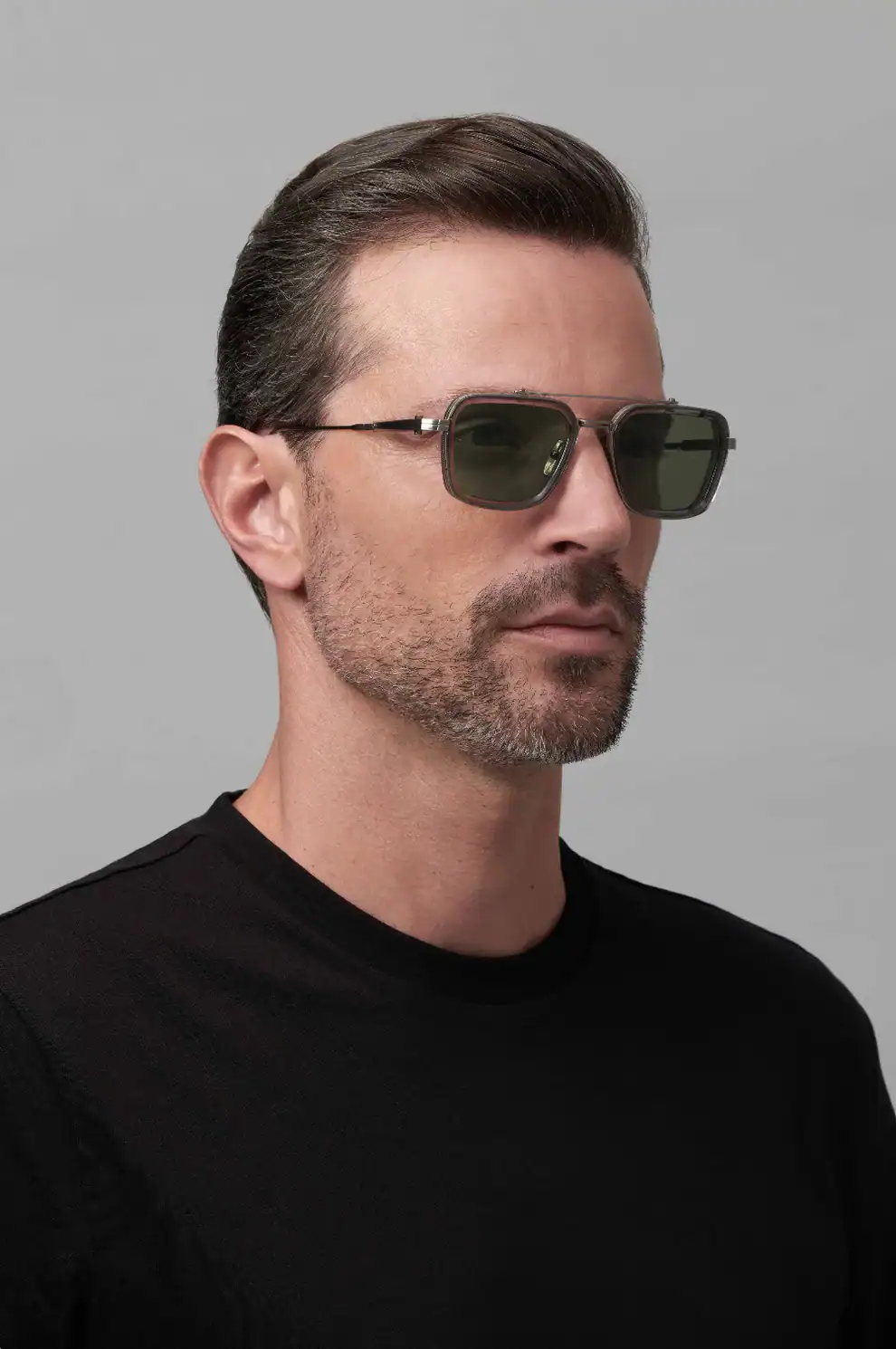 Model Solis is a contemporary interpretation of the classic navigator, in which precision meets elegance. The combination of Japanese acetate and titanium creates a design of exceptional lightness and balance, while the subtle effect of the dégradé on the lenses emphasises the modern character of the design. It is a frame designed for those who seek calmness of form and technical perfection in every detail.